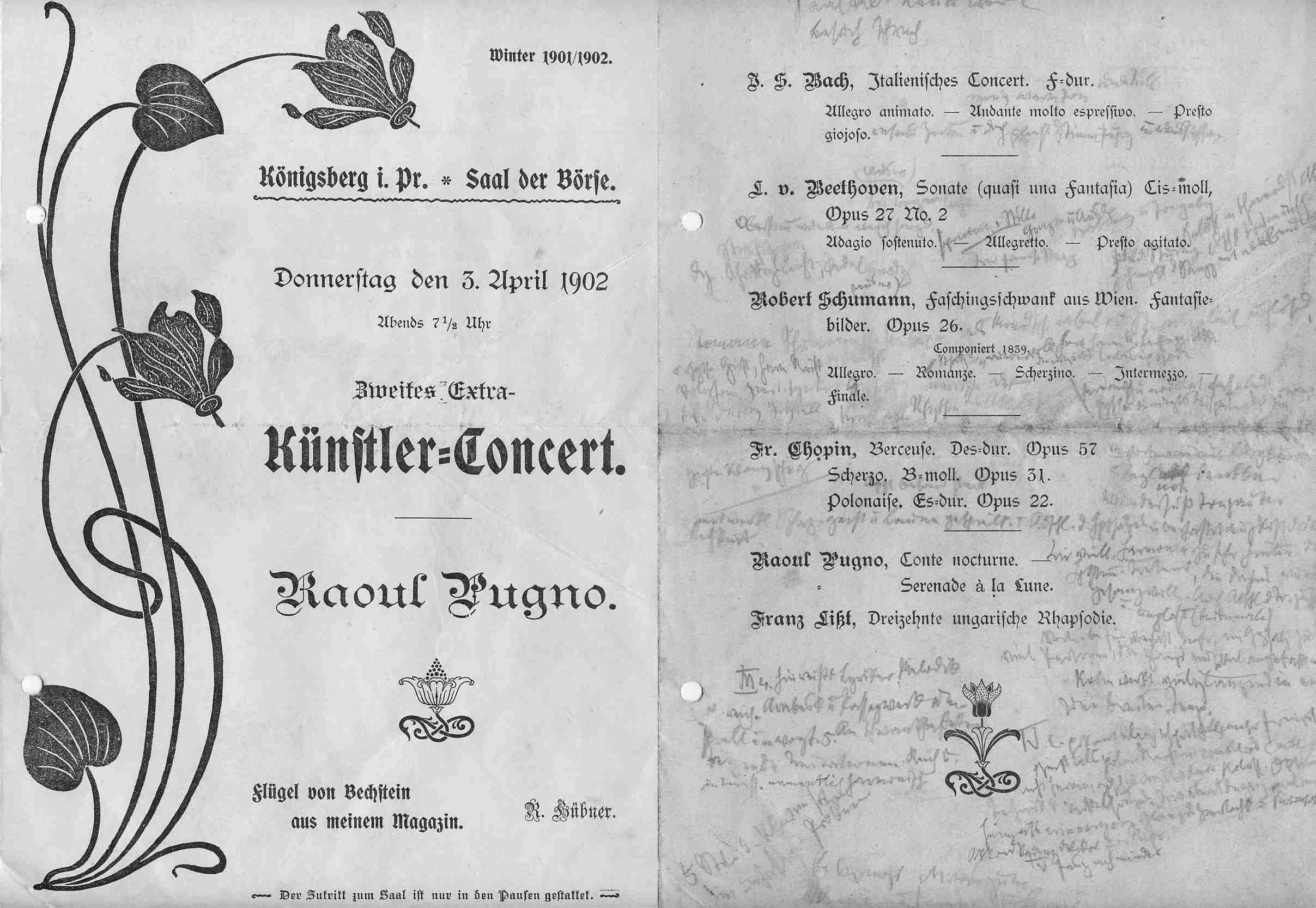 Anmerkung zur Abbildung: Nodnagel machte seine Notizen während eines Konzerts gewöhnlich auf dem Programmzettel. Die meisten Formulierungen fanden dann in der Kritik Niederschlag.
